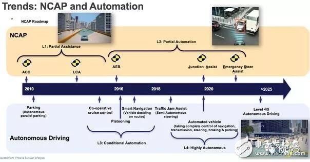 NCAP及自動駕駛趨勢自適應(yīng)巡航控制,能夠幫助汽車在車流中,自動調(diào)整車速、保證與前車的安全距離,進行自動巡航。自動緊急制動功能,能夠在車輛感知到有可能發(fā)生碰撞事故前,自動進行車輛制動。車道保持功能,能夠幫助車輛保持在一個車道中巡航行駛,避免不安全的車道變更。而并線輔助功能,能夠在車輛轉(zhuǎn)彎或變換車道時,探測后方或側(cè)方是否有車輛等障礙物,向駕駛員發(fā)出警示或制動車輛。NCAP發(fā)展路徑圖推動了在汽車中集成更多的傳感器?!袄?,自動緊急制動功能,即需要攝像頭,也需要雷達傳感器,” GlobalFoundries(格羅方德)汽車事業(yè)部副總裁Mark Granger說,“這種技術(shù)已經(jīng)開始從超豪華汽車,下放到更多的中端車型中?!背薔CAP之外,汽車制造商還朝著包括自動駕駛汽車在內(nèi)的另一條道路發(fā)展,自動駕駛技術(shù)也在推動攝像頭、LiDAR和雷達的需求增長。盡管,十年或更久之內(nèi),全自動駕駛汽車并不會成為市場主流。