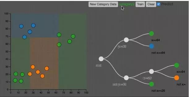 如上圖所示,決策樹把空間分割成不同的區(qū)域。