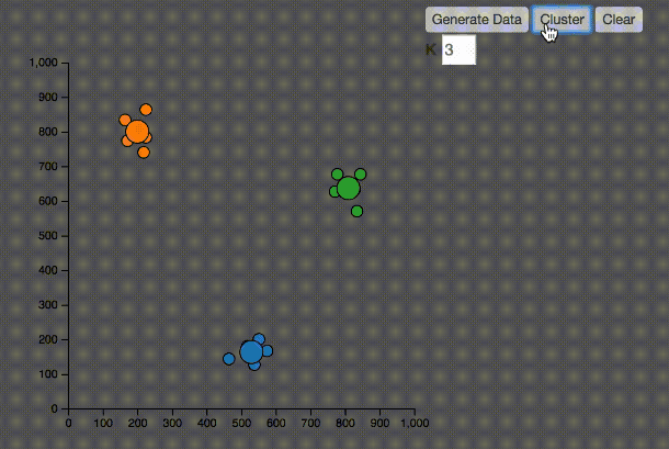 2、由于中心點的初始位置是隨機的,有可能并不能正確分類,大家可以在我的Codepen中嘗試不同的數(shù)據(jù)