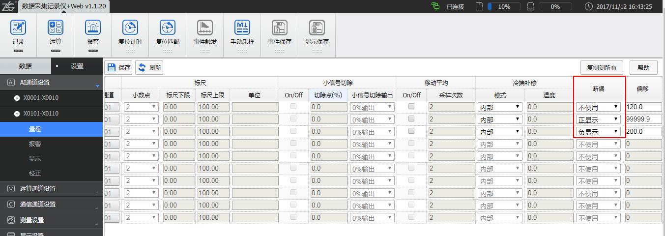 如圖4所示,界面顯示X0101/X0102/X0103三個通道分別顯示正溢出、正斷偶、負(fù)斷偶。此現(xiàn)象是由于熱電偶斷線、未接線或者接觸不好造成,確認(rèn)好數(shù)采端接線即可解決;