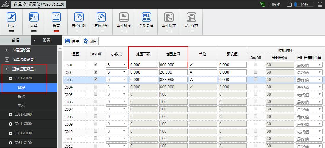 • 設(shè)置好之后切換到“數(shù)據(jù)”界面的“總覽”界面,在對應(yīng)的“通信通道(例如C001、C002)”即可看到數(shù)采采集到的功率計數(shù)值,如圖15所示。