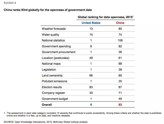 表4:政府?dāng)?shù)據(jù)的開放度,中國在全球排名第93位。
