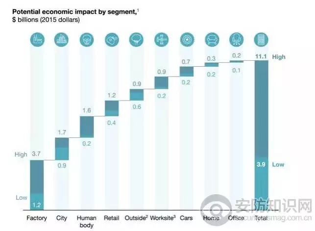 “麥肯錫全球研究院最新預(yù)測,到2025年物聯(lián)網(wǎng)的經(jīng)濟影響價值將達3.9萬億美元至11.1萬億美元;”