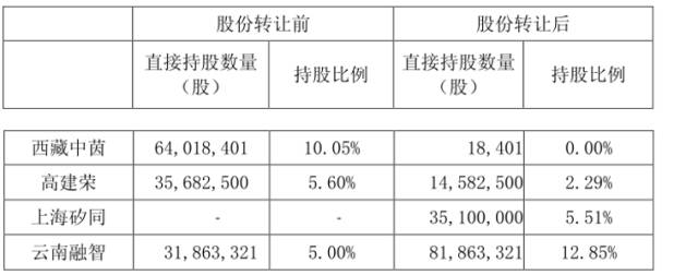 接盤方分別是云南融智與上海矽同。其中云南融智獲得5000萬股,交易金額約15.25億元。上海矽同獲得3510萬股,交易金額約10.7億元。