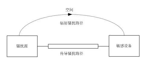 開關(guān)電源電磁干擾(Electro Magnetic Interference,簡稱EMI)產(chǎn)生的條件和傳播途徑如圖1所示:騷擾源、騷擾路徑、敏感設(shè)備。傳導(dǎo)騷擾路徑主要通過共阻抗耦合、容性耦合、感性耦合,測試頻段在150K~30MHz之間;以空間途徑輻射為主的噪聲是輻射騷擾干擾,即電磁場能量以場的形式向四周空間傳播,測試頻段在30M~300MHz之間。