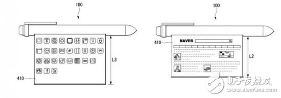 和目前我們已知的智能手寫筆不同,LG的智能手寫筆專利可謂顛覆了傳統(tǒng)消費(fèi)者對(duì)手寫筆的印象。在手寫筆領(lǐng)域,我們已知做得最好的應(yīng)該是三星的S Pen系統(tǒng),蘋果的Apple Pencil,他們都需要與指定的設(shè)備搭配才能使用,但LG這次的專利卻將手寫筆完整做成一個(gè)設(shè)備。手寫筆分為兩塊屏幕,一塊小的屏幕用于程序快捷方式、時(shí)間、和信息通知等;而另外一塊屏幕才是這支智能手寫筆的精髓所在,它是一個(gè)可以拉伸的顯示屏,當(dāng)我們需要時(shí)按動(dòng)專用按鈕將其拉伸,你可以將它用作傳統(tǒng)的智能手機(jī),它可以運(yùn)行所有常規(guī)的應(yīng)用程序,包括瀏覽網(wǎng)頁和發(fā)送消息。