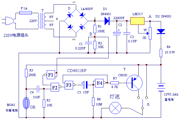 631低成本自動(dòng)應(yīng)急燈電路,Low cost/Automatic