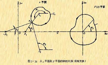 | 圖5-35 s平面上封閉曲線及其在F(s)平面上的映射線 |