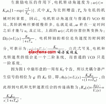 基于鎖相環(huán)的直流電機(jī)轉(zhuǎn)速控制系統(tǒng)實質(zhì)就是一個鎖相環(huán),只不過電動機(jī)加上光電脈沖編碼器的組合代替了壓控振蕩器。由于直流電動機(jī)的外施電壓與電動機(jī)轉(zhuǎn)速之間有良