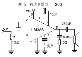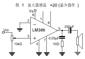 LM386是美國(guó)國(guó)家半導(dǎo)體公司生產(chǎn)的音頻功率放大器,主要應(yīng)用于低電壓消費(fèi)類產(chǎn)品。為使周邊元件最少,電壓增益內(nèi)置為20.但在1腳和8