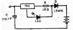 得到了保護(hù)。本電路適于充電電流小于50mA。4.穩(wěn)壓集成電路充電電路由于穩(wěn)壓集成電路的問世,用穩(wěn)壓集成電路制作的充電電路也隨之出現(xiàn),下圖是用7805集成電路接成的恒流充電電路。圖中的發(fā)光二極管LED,作