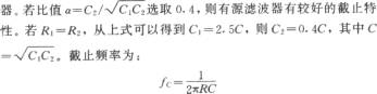 如圖所示為每倍頻程衰減-18dB的有源低通濾波電路。該電路由每倍頻程衰減-6dB的無源濾波器和每倍頻程衰減-12dB的有源濾波器構(gòu)成,整個(gè)電路是每倍頻程衰減-18dB的低通濾波器。R1和C3組成無源濾波器,R2、R3、C1、C2和運(yùn)算放大器組成有源濾波