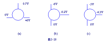 圖5-18(c)最低電位點是-5V,最高電位點是0V,中間電位點是-4.3V,說明該三極管的電流是從0電位點往-4.3V點流,再流向-5V點,與(1)一樣,它是NPN硅管,在電路中NPN硅管發(fā)射極的電位最低,所以-5V點是發(fā)射極c,-4.3V點是基極b。0電位點是集電極c。