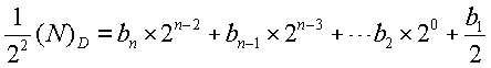 這樣又得到了一個20項(xiàng),也就是b-2也將再次被從式子中剔除,但同時也就產(chǎn)生了二進(jìn)制小數(shù)的前兩位。重復(fù)上述過程,直到 滿足要求的位數(shù)時做“四舍五入”,也就完成了從十進(jìn)制小數(shù)到二進(jìn)制小數(shù)的轉(zhuǎn)換。