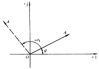 時(shí)刻,相量轉(zhuǎn)到圖中虛線所示位置。此時(shí)與實(shí)軸夾角為