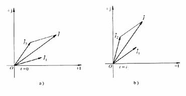 我們還可以在相量圖上直觀地來(lái)分析兩個(gè)正弦量的相量相加的意義。電流i1與i2的相量