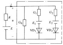 當(dāng)時(shí),二極管VD1、VD2斷開(kāi),電路成為E、R、G串聯(lián),此時(shí):