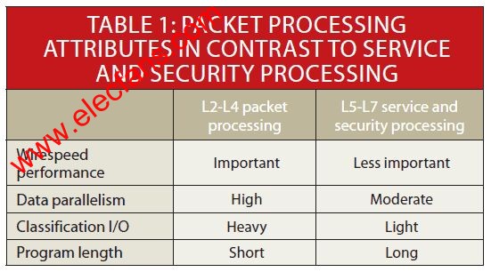 與數(shù)據(jù)包處理相近的市場是服務(wù)和安全處理。這些應(yīng)用具有與2-4層數(shù)據(jù)包處理不同的特點。因此,可實施其它的硬件設(shè)計優(yōu)化。
