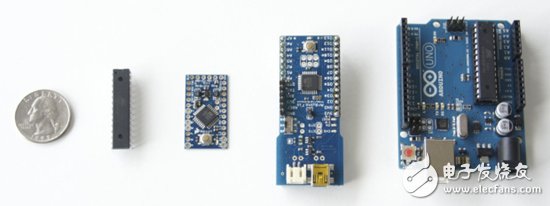 如果開發(fā)的產(chǎn)品需要保證尺寸較小,我們推薦Arduino。這三款平臺(tái)的尺寸相似,不過Raspberry Pi的SD儲(chǔ)存卡會(huì)讓它看起來更大。Arduino的款式躲讓,但讓Arduino區(qū)別于其他平臺(tái)的特性在于,它擁有特別的微處理器,以及一些軟件。它使用Atmel公司的一款微處理器嵌入式系統(tǒng),體積小,價(jià)格實(shí)惠。對(duì)于那些需要尺寸非常小巧的項(xiàng)目來說,你可以花費(fèi)1到2美元購買Atmel的這些芯片,并使用Arduino Bootloader(一個(gè)賦予Arduino基本功能的程序),安裝后,你就又擁有了一個(gè)Arduino。