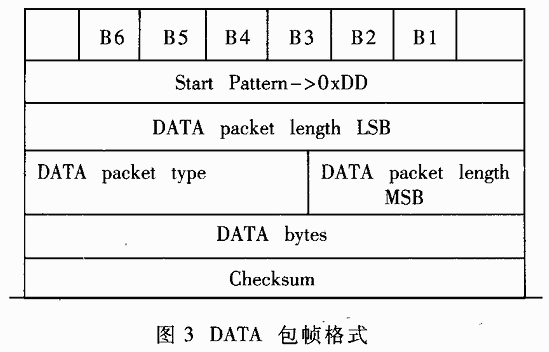 數(shù)據(jù)包各個字段(除packet type外)意義與AT命令包相同,其幀格式如圖3所示。數(shù)據(jù)包有以下幾種類型: