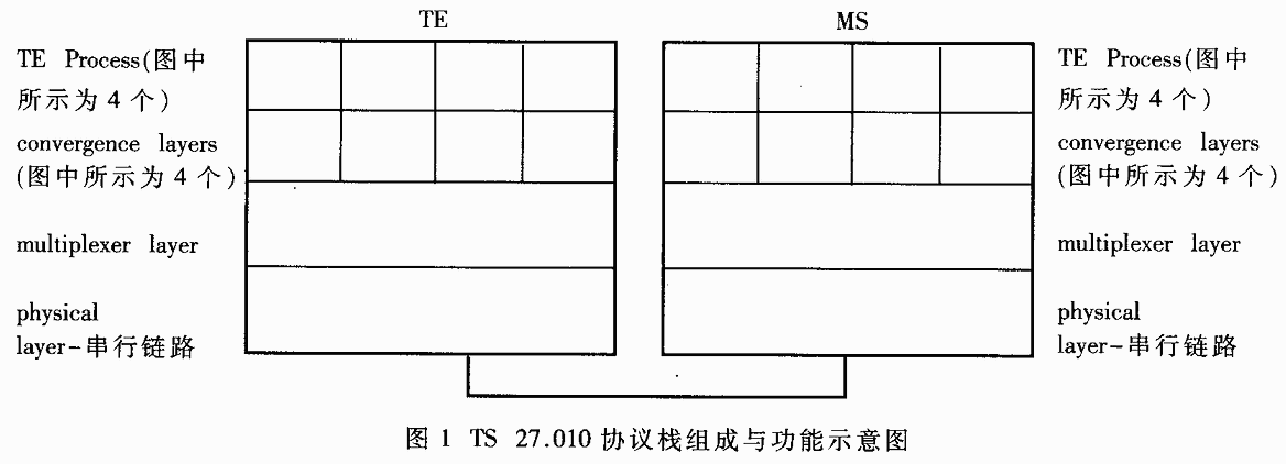 圖1 TS27.010協(xié)議棧組成與示意圖