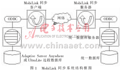 ??? MobiLink同步系統(tǒng)的結(jié)構(gòu)如圖1所示[4]: