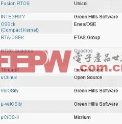 Blackfin處理器支持的主要操作系統(tǒng)及第三方供應(yīng)商列表。