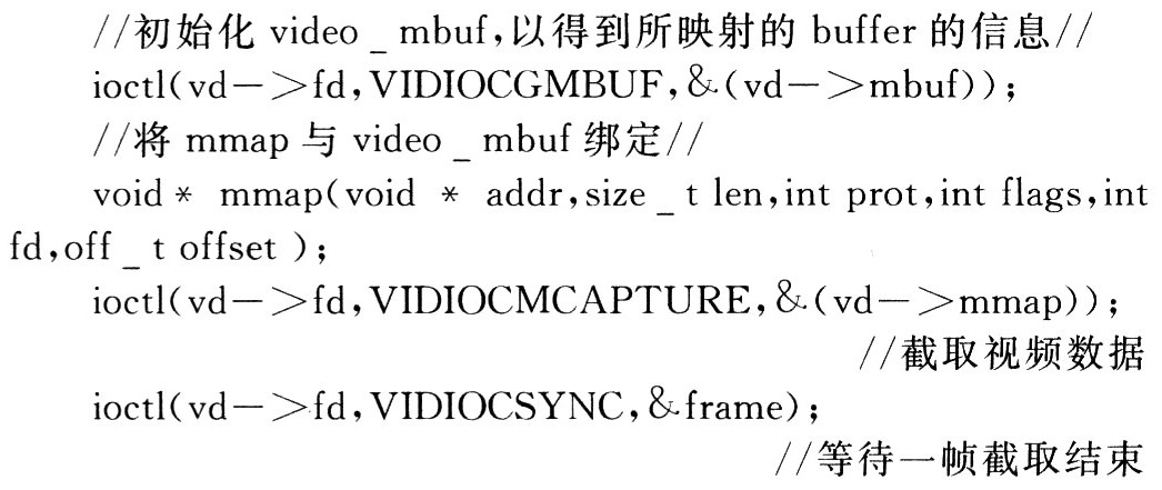 ??? 系統(tǒng)是在嵌入式Linux系統(tǒng)平臺上采用Video4Linux編程來采集視頻的。一般攝像頭是直接讀視頻設(shè)備,采集到視頻數(shù)據(jù)并存在文件中。對文件進(jìn)行操作,這樣程序運(yùn)行效率會很低。本系統(tǒng)摒棄這種方法,采用mmap(內(nèi)存映射)方式截取視頻數(shù)據(jù)。mmap()系統(tǒng)調(diào)用使得進(jìn)程之間通過映射同一個普通文件實(shí)現(xiàn)共享內(nèi)存。普通文件被映射到進(jìn)程地址空間后,進(jìn)程可以向訪問普通內(nèi)存一樣對文件進(jìn)行訪問,不必再調(diào)用read(),write()等操作。采用共享內(nèi)存通信的一個顯而易見的好處是效率高,因?yàn)檫M(jìn)程可以直接讀寫內(nèi)存,而不需要任何數(shù)據(jù)的拷貝。