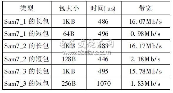 表2 PC 對(duì)3 個(gè)SAM7( 基于UDP)