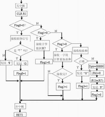 ? 在中斷服務(wù)子程序中,為區(qū)別所接收的信號是聯(lián)絡(luò)信號還是字節(jié)數(shù)、是數(shù)據(jù)還是校驗(yàn)和,需要設(shè)立不同的標(biāo)志位如下: