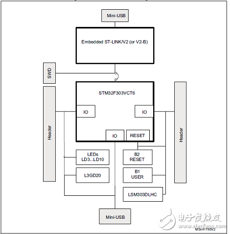 圖4.Discovery kit STM32F3DISCOVERY硬件框圖