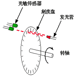 ??? 光電編碼器的工作原理為:在刻度盤上均勻分布一定數(shù)量的小孔,有光透過時產(chǎn)生邏輯“1”信號,沒有透光時產(chǎn)生邏輯“0”信號,這樣從光敏傳感器就可以產(chǎn)生A、B兩路相位相差90度的正交信號。
