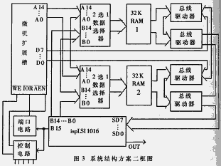 ??? 但是,考慮到EPROM編程及擦寫的過程比較繁瑣,數(shù)據(jù)不易改寫,靈活性及通用性較差,因此,經(jīng)過比較決定采用第二種方案。其框圖如圖3所示。