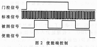 為克服低頻段測量的不準(zhǔn)確問題,采用門控信號和被測信號對計數(shù)器的使能信號進(jìn)行雙重控制,大大提高了準(zhǔn)確度,如圖2所示。
