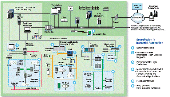 The range of peripherals SmartFusion offers for the Cortex-M3 processor and the flexibility of its FPGA fabric make the device ideal for industrial automation. The SmartFusion Development Kit supports Ethernet, EtherCAT, CAN, UART, I2C and SPI hardware, while firmware can be used for various other interface standards such as Modbus? and PROFIBUS for industrial networking. With the use of the programmable analog for sensing and analog outputs, SmartFusion can also be used in industrial control applications, including gateways, sensing, actuators and I/O devices. The list below describes how the various sections of the device could be used in industrial automation.