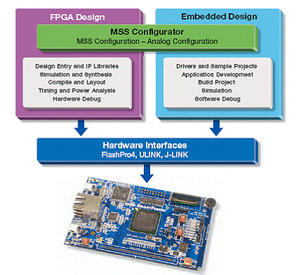 圖9.采用SmartFusion的設(shè)計流程連接圖