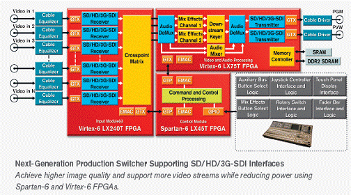 圖3.支持SD/HD/3G-SDI接口的新一代交換框圖(廣播通信)