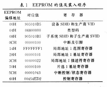 系統(tǒng)加電時(shí),通過(guò)PCI的RST復(fù)位以后,PCI9052首先檢測(cè)EEPROM是否存在。如果檢測(cè)到EEPROM首字不是FFFFH,PCI9052將依次讀取EEPROM的內(nèi)容來(lái)初始化內(nèi)部寄存器。PCIBIOS根據(jù)配置寄存器的內(nèi)容進(jìn)行系統(tǒng)資源分配,這樣,整個(gè)PCI設(shè)備的資源才不會(huì)發(fā)生沖突,從而實(shí)現(xiàn)了PCI總線的即插即用的特性。