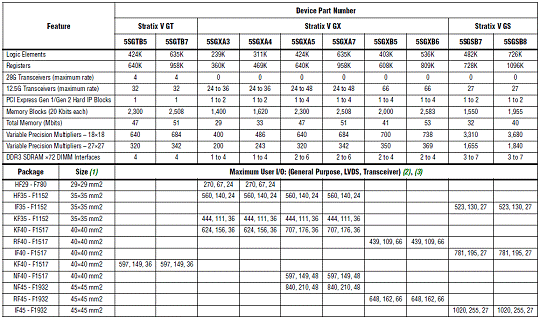 表1。Stratix V GT/GX/GS FPGA型號(hào)