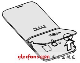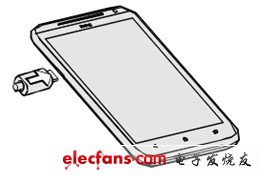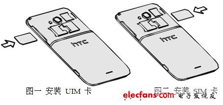 2.? 如下圖所示,將 UIM 卡(或雙??ǎ┲萌肟ú垡恢?,SIM 卡置入卡槽二中,將卡的金屬觸點部分朝下,注意截角方向,不要放反。