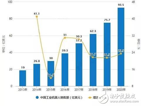 預測到2020年,中國機器人的需求將以30%的年速度高速增長。 汽車行業(yè)過去一直是機器人應用最主要領域,隨著自動化需求的提升,工業(yè)機器人應用得到更大的拓展,除傳統(tǒng)的焊接應用外,機器人在機床