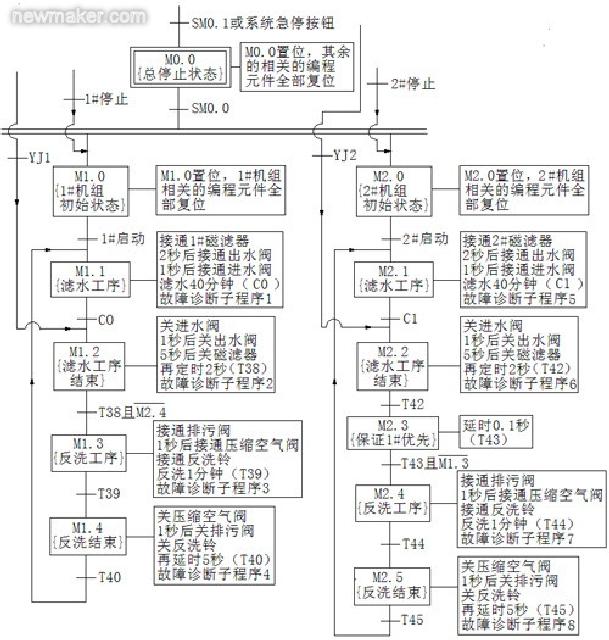 本文介紹了利用西門子公司的S7-224 型PLC,來實(shí)現(xiàn)含氧化鐵雜質(zhì)的污水凈化處理系統(tǒng)的自動控制,本文詳細(xì)介紹了系統(tǒng)的硬件配置以及軟件設(shè)計(jì)流程圖,并且介紹了編程中的關(guān)