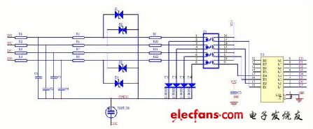 印制板設(shè)計時,要考慮到干擾對系統(tǒng)的影響,將電路的模擬部分和數(shù)字部分的電路嚴格分開,對核心電路重點防護,將系統(tǒng)地線環(huán)繞,并布線盡可能粗,電源增加濾波電路,采用DC-DC隔離,信號采用光電隔離,設(shè)計隔離電源,分析容易產(chǎn)生干擾的部分(如時鐘電路、通訊電路等)和容易被干擾的部分(如模擬采樣電路等),對這兩種類型的電路分別采取措施。對于干擾元件采取抑制措施,對敏感元件采取隔離和保護措施,并且將它們在空間和電氣上拉開距離。在板級設(shè)計時,還要注意元器件放置要遠離印制板邊沿,這對防護空氣放電是有利的。樣電路的原理圖設(shè)計參見圖1。