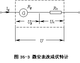 表頭的 I g 、 R g 事先測(cè)出,根據(jù)需要的伏特計(jì)量程,由( 35-2 )式就可以算出應(yīng)串聯(lián)的電阻值 . 一般地,由于伏特計(jì)的量程 U 遠(yuǎn)大于表頭的量程 U g ,串聯(lián)電阻 R S 會(huì)遠(yuǎn)大于表頭內(nèi)阻 R g .