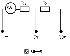 (3).設(shè)計(jì)電壓擋,計(jì)算并選擇元件.參考電路示圖35—9.