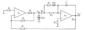 和鋸齒波電壓產(chǎn)生器電路,A1的輸出信號uO1作為A2的輸入信號,A2的輸出信號uO2作為