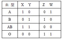 者的血型,用Z、W 的不同組合表示接受者的血型,如右表所示。