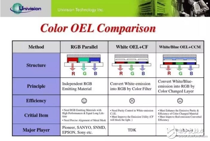 4383 過(guò)去的市場(chǎng)上OLED一直沒(méi)辦法普及,主要的問(wèn)題在于早先技術(shù)發(fā)展的OLED樣品大多是單色居多,即使采用多色的設(shè)計(jì),其發(fā)色材料和生產(chǎn)技術(shù)往往還是限制了OLED發(fā)色的多樣性。實(shí)際上OLED的影像產(chǎn)生方法