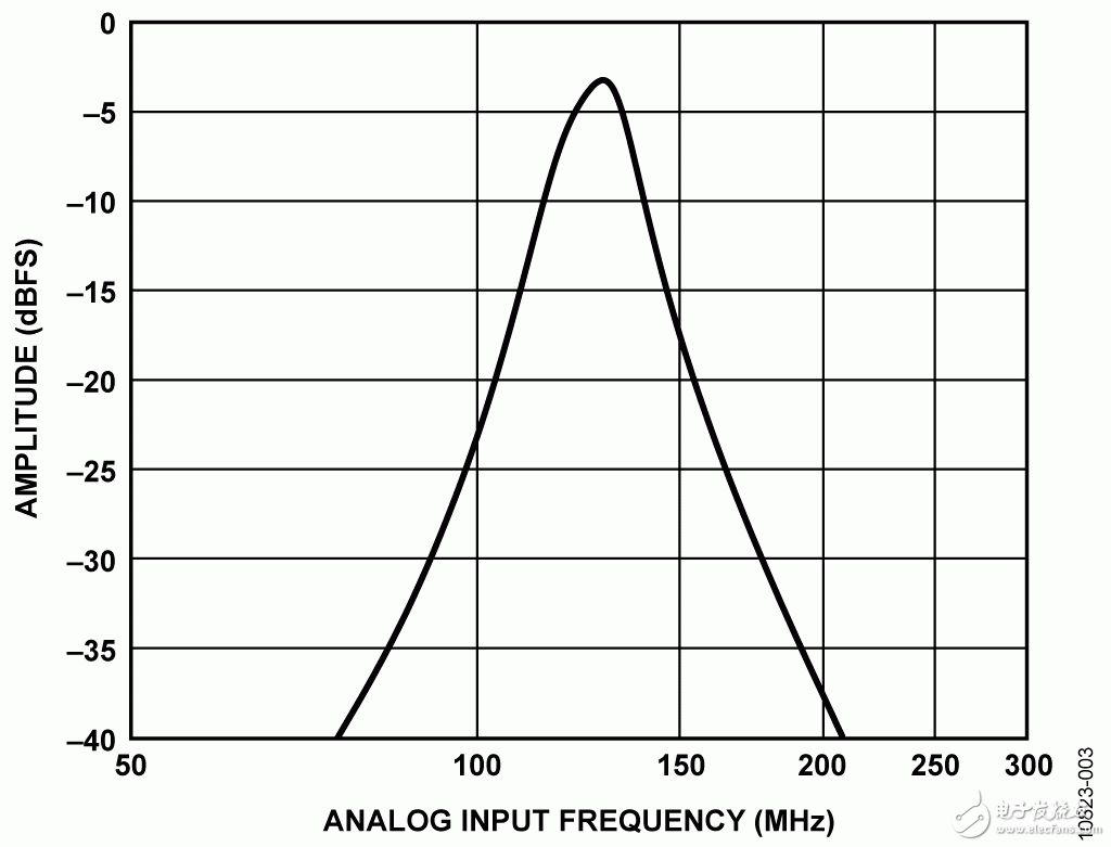 4 沃茲抗混疊濾波器基于放大器和ADC的性能與接口要求而優(yōu)化。由濾波器網(wǎng)絡(luò)和其它阻性元件引起的總插入損耗約為2.3dB。整體電路(集成帶通濾波器)擁有75 MHz的1dB帶寬(145 MHz至220 MHz)和110