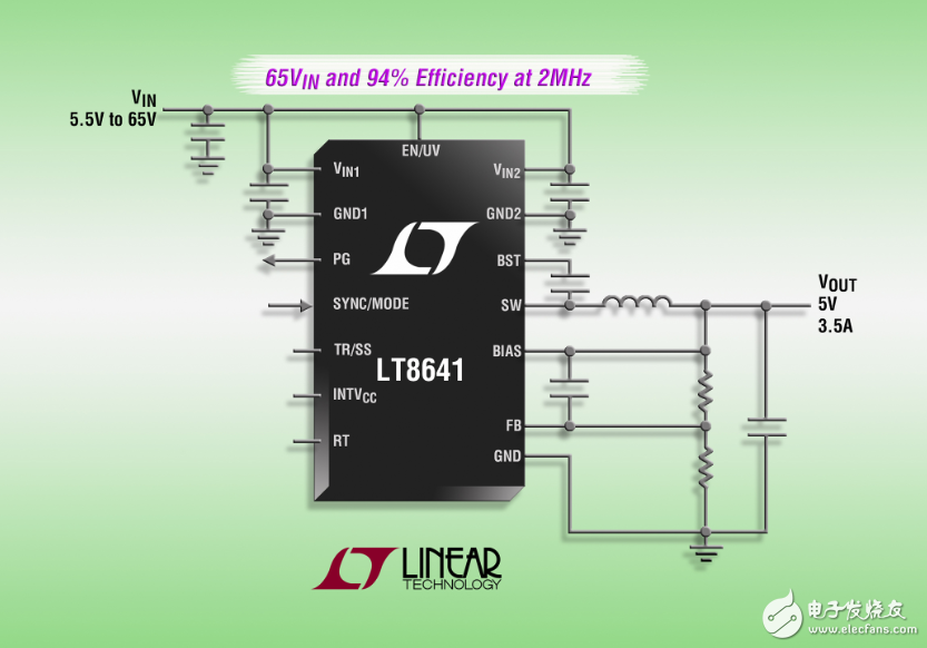 5 LT8641演示電路-2 MHz功率超低EMI降壓轉(zhuǎn)換器(5.5-65V至5V@3.5A)